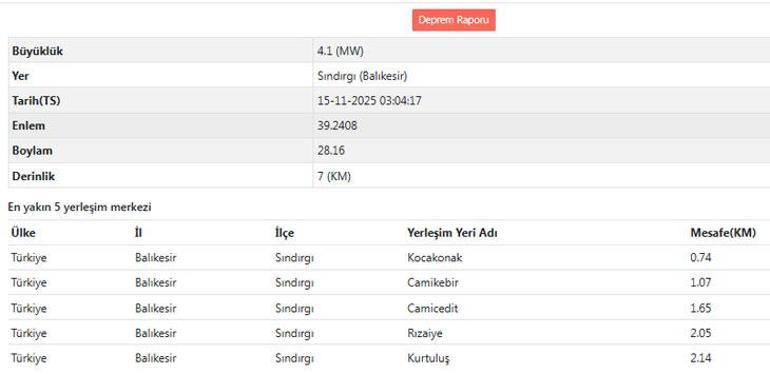 Afet ve Acil Durum Yönetimi Başkanlığının (AFAD) internet sitesinde yer alan bilgiye göre, merkez üssü Sındırgı ilçesi olan 4,1 büyüklüğünde sarsıntı kaydedildi.